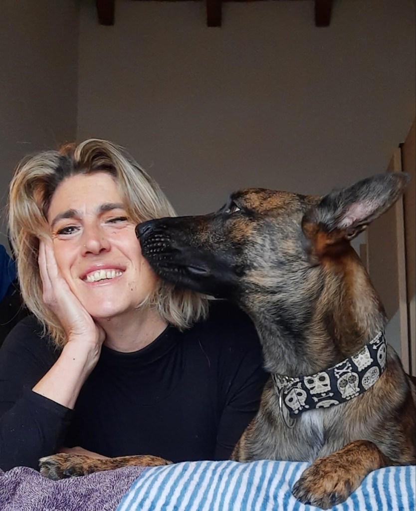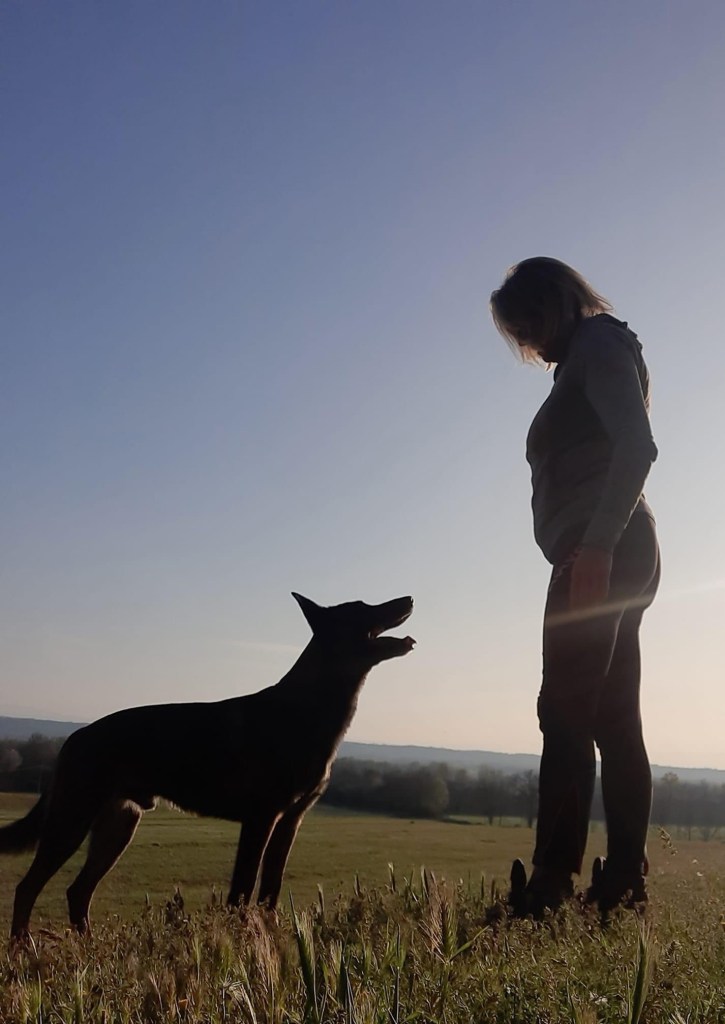 Tutto è nato dalla follia di Aron, il mio primo cane, forse anche un pò dalla mia di follia… Ma cominciamo dal principio. Qualche anno fa con la mia famiglia abbiamo deciso di trasferirci in campagna e di ristrutturare una cascina. Per sentirci più sicuri in quel nuovo contesto, abbiamo deciso di adottare un cane e abbiamo selezionato come nostra razza ideale il pastore belga Groenendael. Detto, fatto. Trovata una cucciolata, ci siamo portati a casa un cucciolone di 6 mesi, che si è subito rivelato uno di quei cani difficili e sfidanti che, come tante volte succede, ti impongono un cambio di rotta e, a volte, di vita. Dopo varie esperienze fallimentari con sedicenti esperti cinofili, ho incontrato un addestratore e figurante di esperienza, che ha il campo vicino casa mia. Da lì ho incominciato a frequentare il mondo della cinofilia, il mio cane è migliorato molto ma soprattutto è iniziata così la mia passione. Ho scoperto lo sheepdog, una disciplina in cui le caratteristiche del mio cane (alta indocilità, diffidenza, forti timori) potevano trasformarsi da debolezze in talenti. Nel mese di maggio le prime lezioni – durante le quali ho capito che il mio Aron era nato per il tondino – nel mese di giugno abbiamo affrontato e superato con successo il test attitudinale, nel mese di ottobre avevo già 10 pecore e nel giro di due anni (tra corso addestratori, stage vari e tirocini) sono diventata istruttrice di sheep dog…