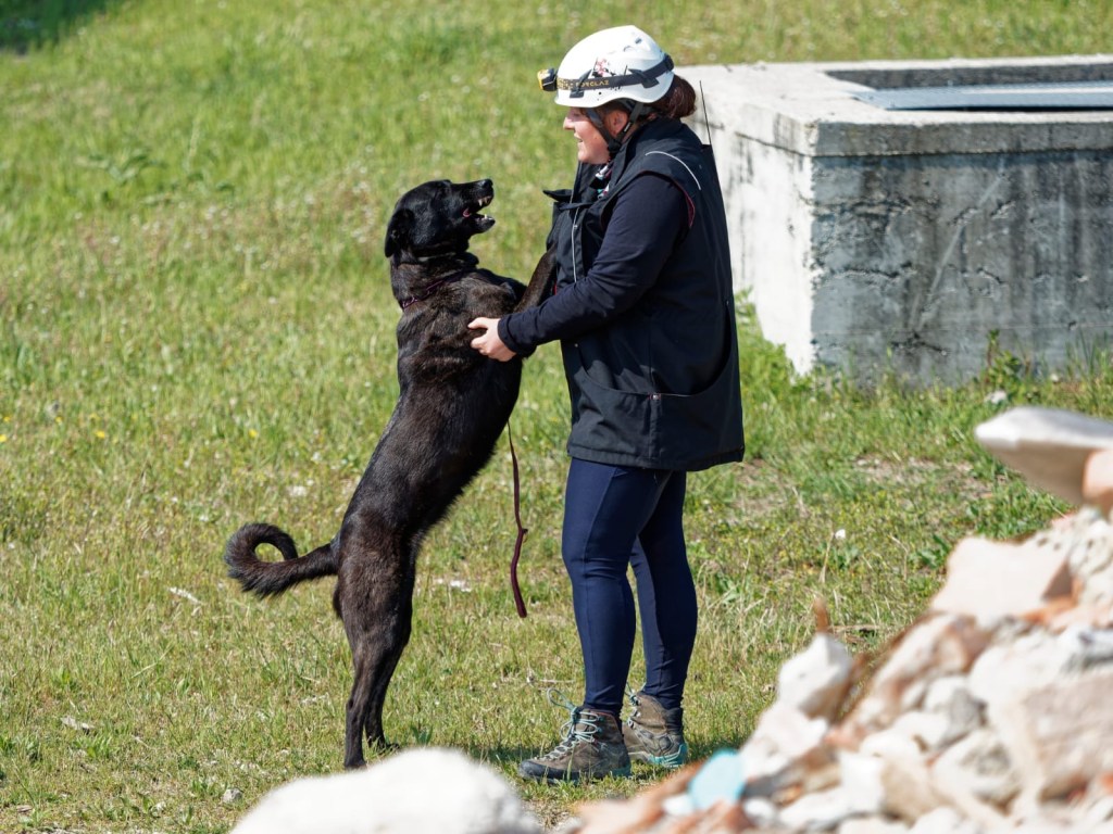 Sì, confermo. Io e Nyx per ora abbiamo ottenuto IPO RH FL A e IPO RH T A con un ottimo piazzamento (4° posto al nostro primo trofeo ENCI) e l’operatività ENCI in ricerca superficie e macerie. Ma non ci siamo fermati ai primi successi. A fine maggio abbiamo partecipato ad un’esercitazione internazionale a squadre di missione reale a Ljubljana dove il nostro team si è classificato benissimo (secondo su 17 squadre), riuscendo – in un arco di 17 ore continue, senza interruzioni – a effettuare 9 ritrovamenti su 10 figuranti. E’ stato un impegno notevole, ma con un contenuto formativo ineguagliabile. L’esercitazione è durata 24 ore, con una parte svolta in notturna, i siti interessati sono stati diversi (edifici abbandonati, bosco, campo macerie) dal centro città alla campagna, gli spostamenti tutti insieme ai pompieri. La nostra squadra, composta da tre binomi, ha lavorato benissimo: ottima comunicazione (fondamentale specialmente quando la stanchezza si fa sentire); grande sintonia fra noi e i cani, che hanno lavorato contemporaneamente in tutti i siti; efficace coordinamento nell’azione di supporto perché uno andava a coprire l’altro… insomma una figata!