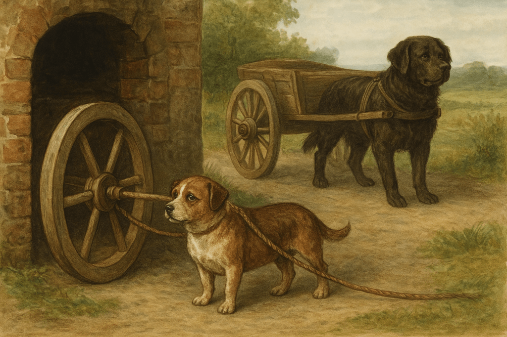 Accanto a queste pratiche, Lane ricorda con sollievo la fine di lavori che oggi ci sembrerebbero pura crudeltà, come il cane “gira-arrosto”, il Turnspit, che correndo in una ruota faceva girare lo spiedo delle cucine, o i cani da soma, impiegati a trainare carretti, a volte con sopra uomini e donne corpulenti, lungo le strade di campagna a velocità impressionante. Scene che oggi ci appaiono inimmaginabili e che invece erano parte ordinaria del paesaggio europeo dell’epoca.