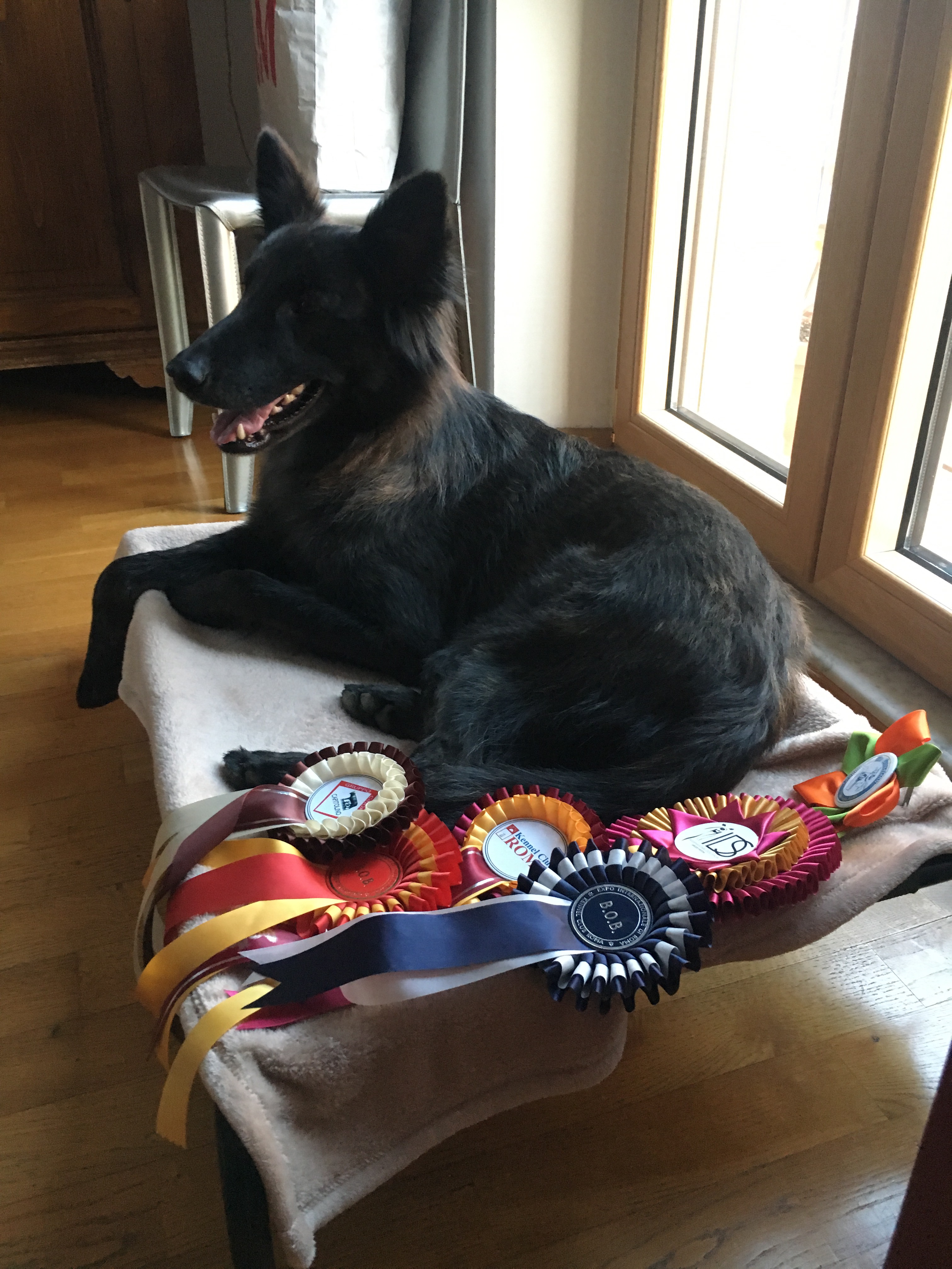 E poi c’è Lunetta. Anzi poi c’è Luna du Hameau des Trois Fontaines, cane da pastore olandese a pelo lungo, dichiarata campione italiano di bellezza nel 2018, a meno di 3 anni. Sempre Best of Breed e primo eccellente in tutte le esposizioni a cui abbiamo partecipato…. tranne una in cui una giudicessa slava le ha dato molto buono perché too shy. Avete presente i genitori di un bimbo con l’argento vivo addosso che si sentono dire che è timido o quando l’adolescente insopportabile va ospite in casa di amici che ti fanno i complimenti per come è bene educato? Ecco stessa sensazione ho avuto io con la giudicessa: incredulità e un agrodolce senso di soddisfazione 😀